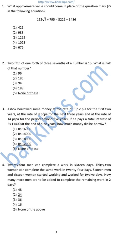 Download Clerical Aptitude Questions And Answers For Bank Exam PDF